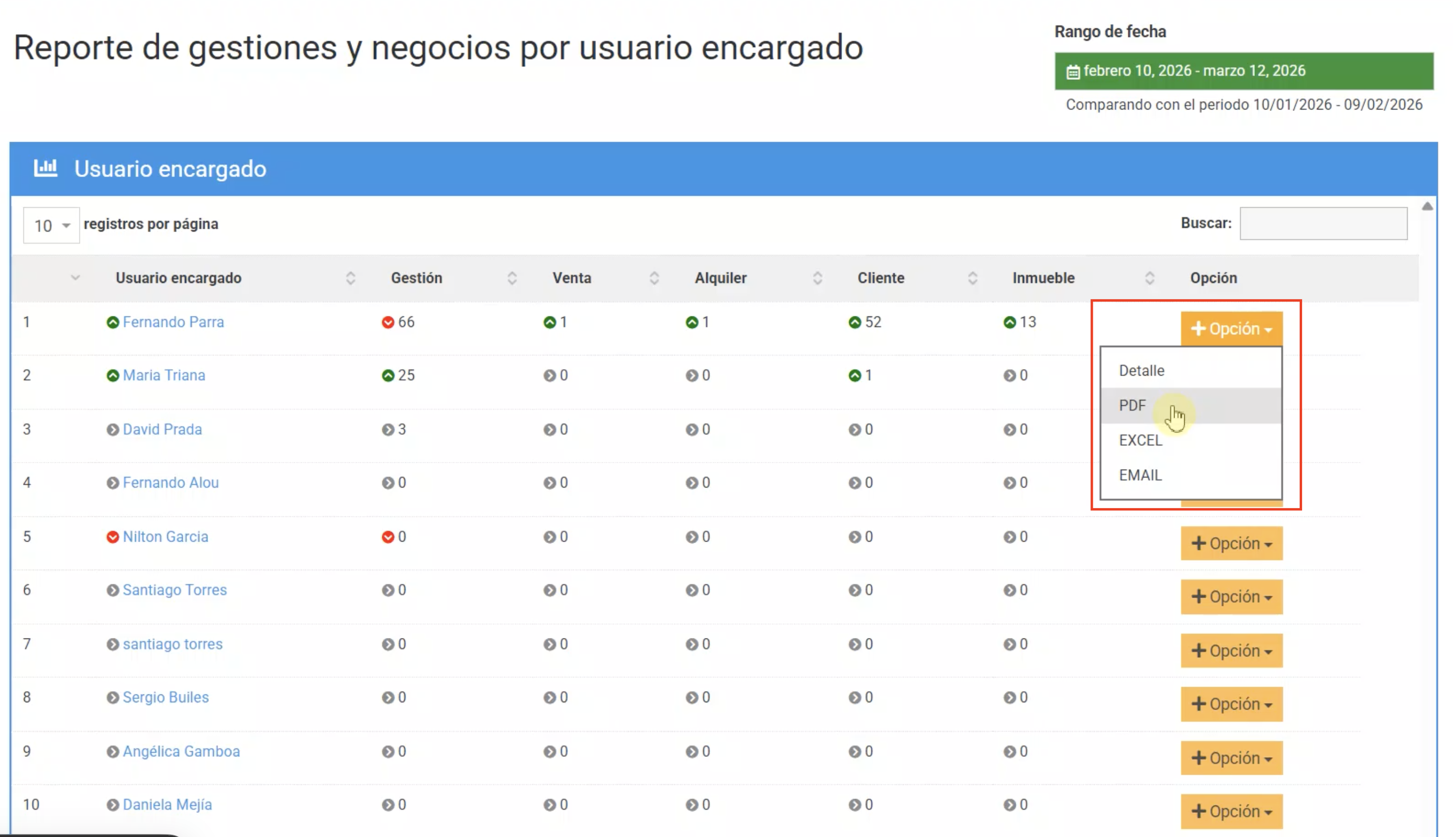La gestión inmobiliaria es estacional. Una vez revisada la urgencia de la semana, el siguiente paso es filtrar por periodos más amplios (mes actual vs. anterior). Esto es vital para entender la tendencia de la oficina: ¿estamos captando más que el mes pasado o el ritmo ha bajado?