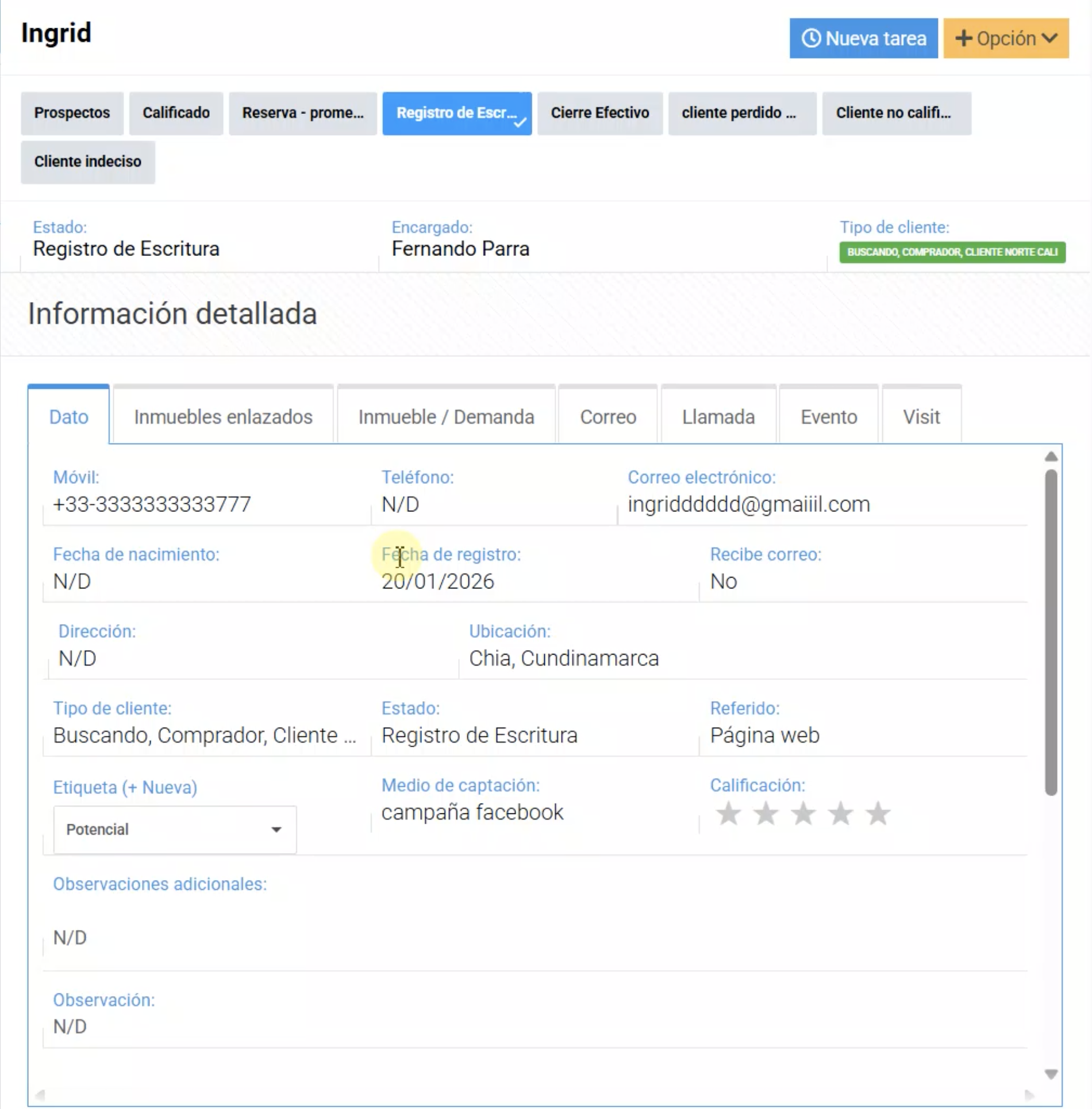 • Clasificar el avance: Saber quién solo preguntó y quién ya visitó la propiedad.