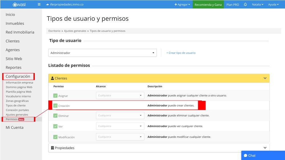 Ahora tienes una opción de permisos de administrador solo para crear clientes. Accede desde configuración/permisos en tu escritorio de Wasi.